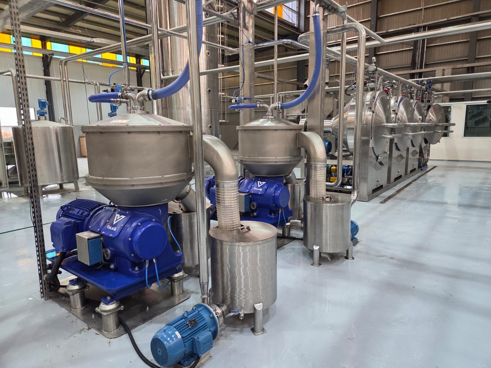 Centrífuga Lavadora de prato com a vazão de 15 a 100 m³/h para lavação e concentração de amido é composta por rotor de pratos e bicos ejetores.